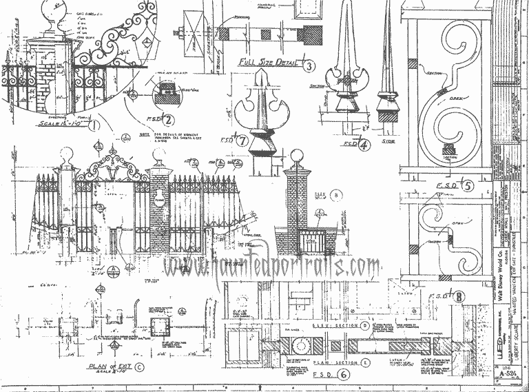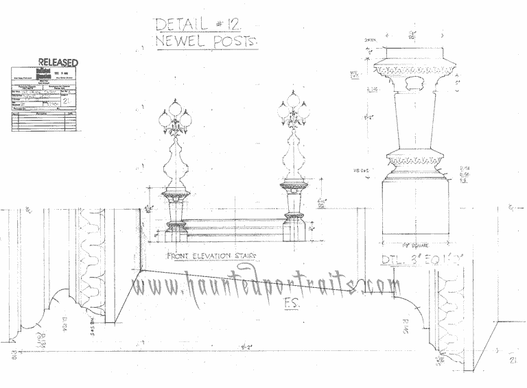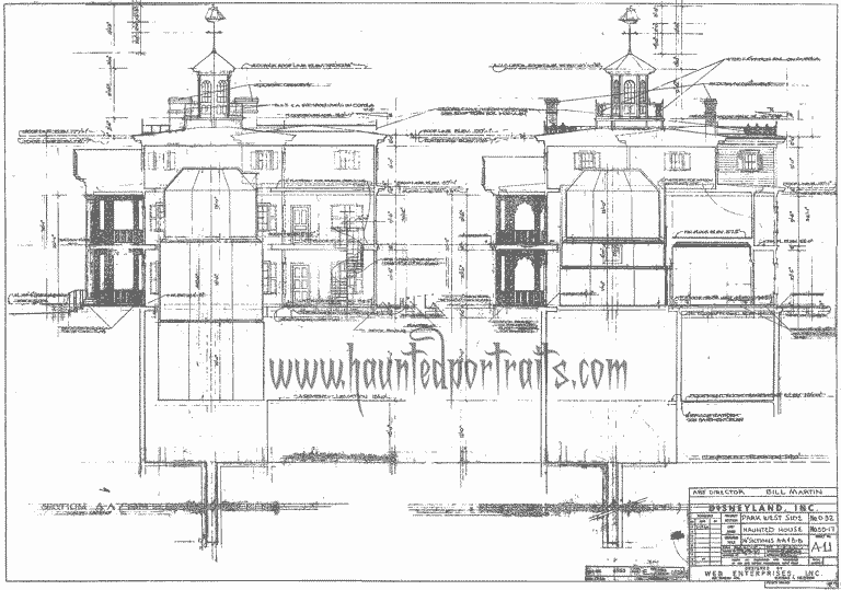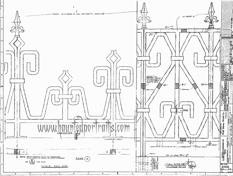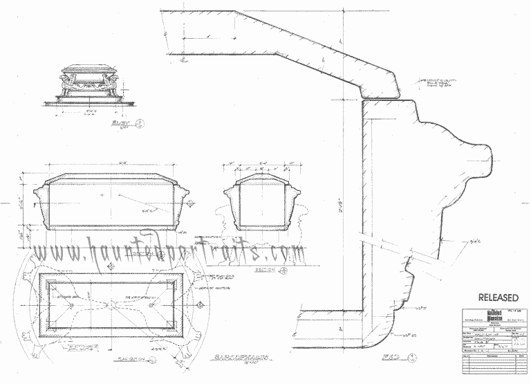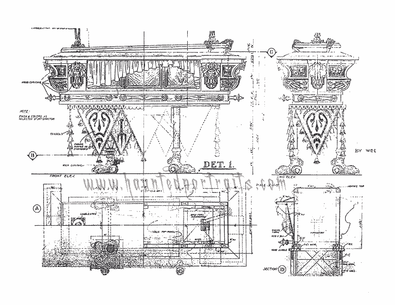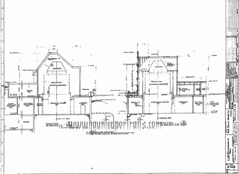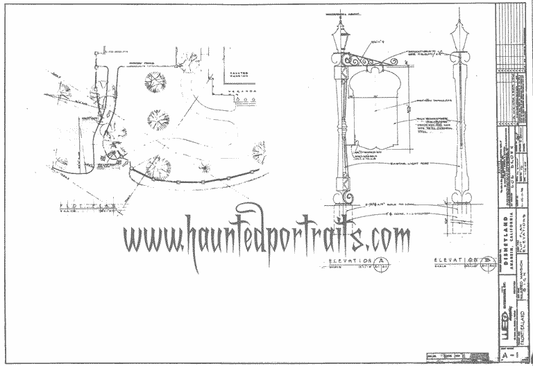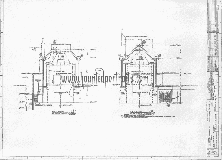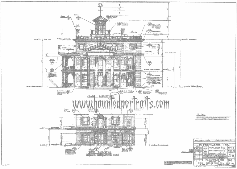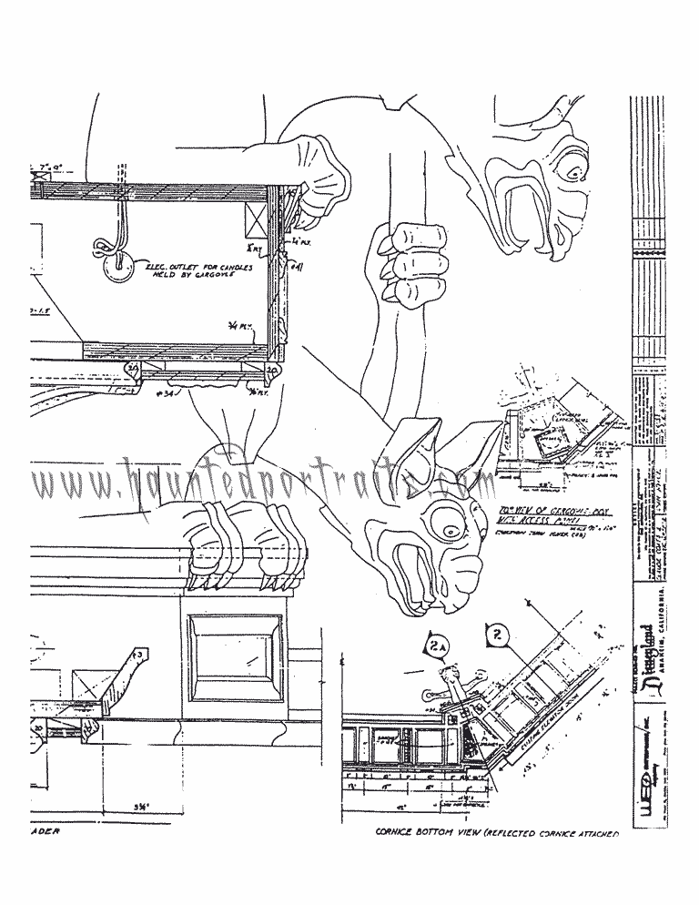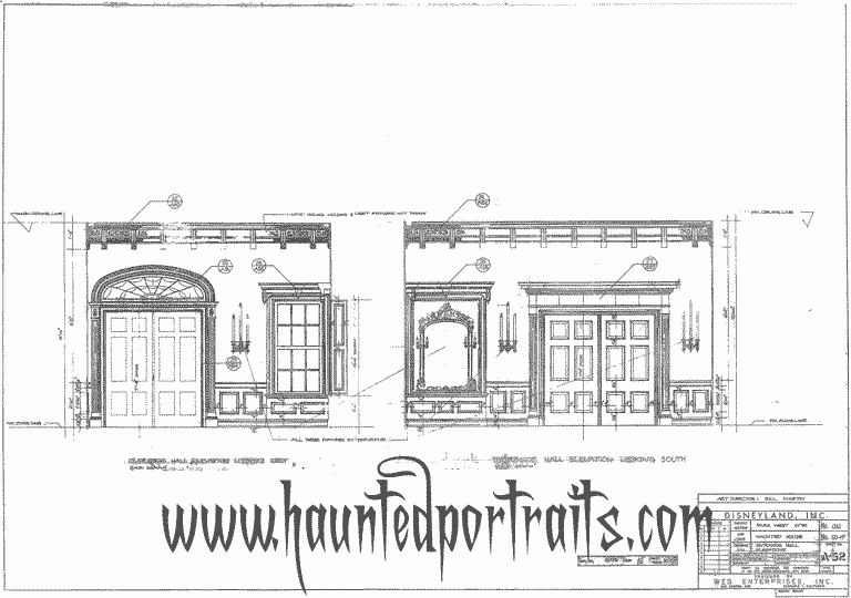 I visited Walt Disney World (WDW) way back in 1973. Back then WDW was just the Magic Kingdom, but oh what a Magical place it was. Of all the things we did at the park that crowded Easter weekend, the one that was truly awe inspiring was the Haunted Mansion. In my opinion this is the finest work of Disney Imagineering ever created. I had the joy a few years ago of sharing the Haunted Mansion and it's resident 999 resident ghosts with my daughter and now it's her favorite also. It's pretty obvious that The Haunted Mansion has been a huge influence on the Haunted Changing Portraits I do and many of my works are based on scenes or props in The Haunted Mansion. Below are a few of the blueprints and a tribute to the creative people that brought this idea to life. If you have any additional Blueprints, I'd love to know about them. E-mail me