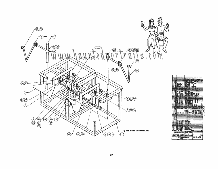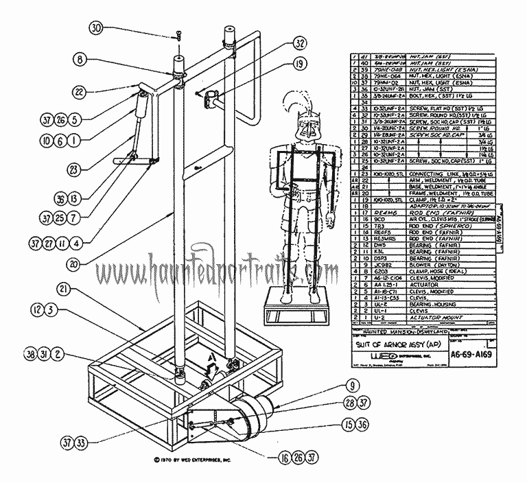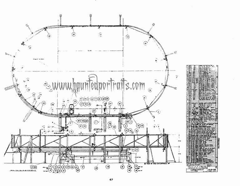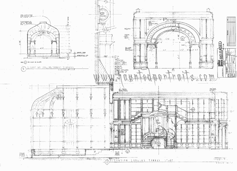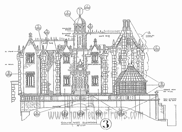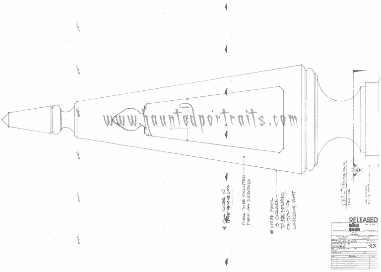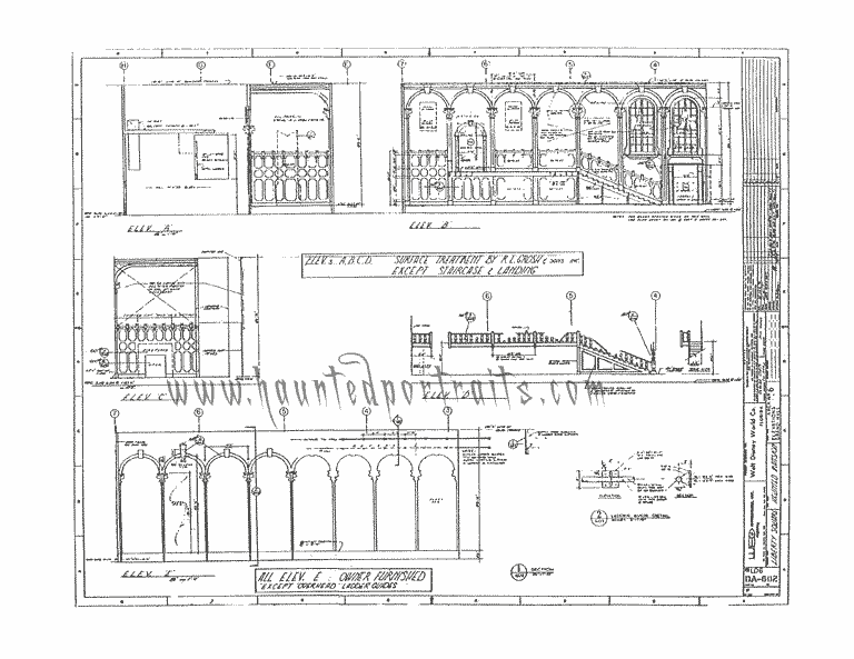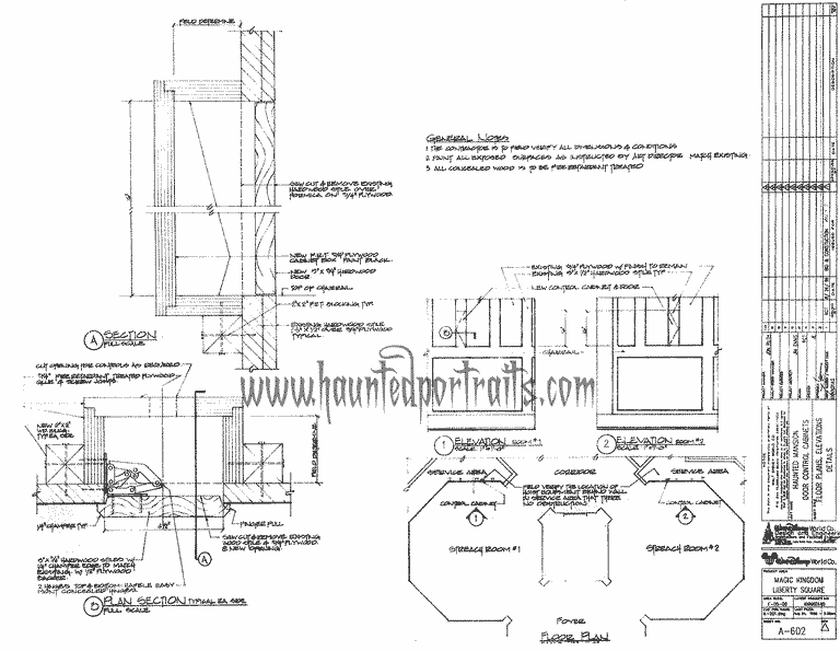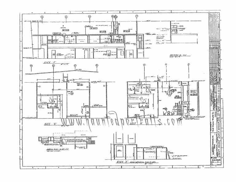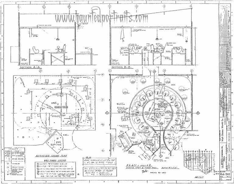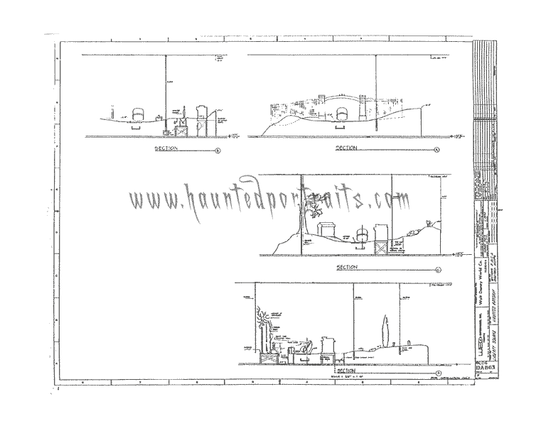 I visited Walt Disney World (WDW) way back in 1973. Back then WDW was just the Magic Kingdom, but oh what a Magical place it was. Of all the things we did at the park that crowded Easter weekend, the one that was truly awe inspiring was the Haunted Mansion. In my opinion this is the finest work of Disney Imagineering ever created. I had the joy a few years ago of sharing the Haunted Mansion and it's resident 999 resident ghosts with my daughter and now it's her favorite also. It's pretty obvious that The Haunted Mansion has been a huge influence on the Haunted Changing Portraits I do and many of my works are based on scenes or props in The Haunted Mansion. Below are a few of the blueprints and a tribute to the creative people that brought this idea to life. If you have any additional Blueprints, I'd love to know about them. E-mail me