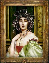 The greek mythic beauty Medusa is the inspiration for this new portrait. Her classic beauty draws you in and then turns, unleashing a hairdo that will knock-em dead. Her stone cold glare can be found in this little alcove of the Gallery